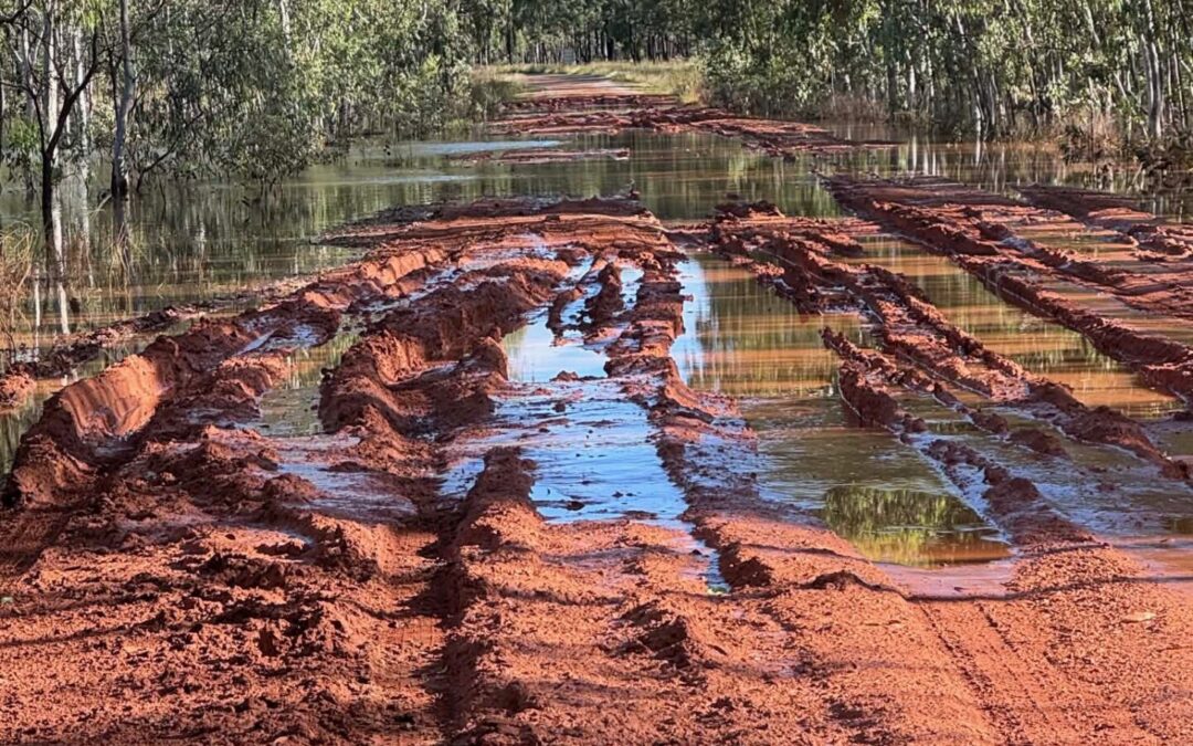 CAPTION: The unsealed 11km stretch of the Kennedy Developmental Road is an impassable bog and is adding to fuel costs and supply chain pressures.